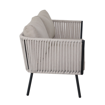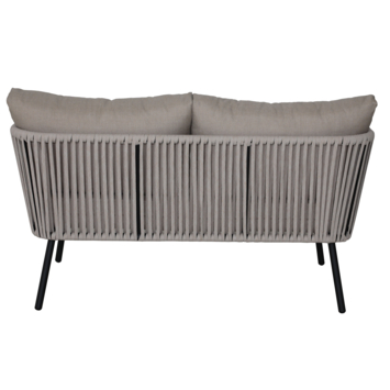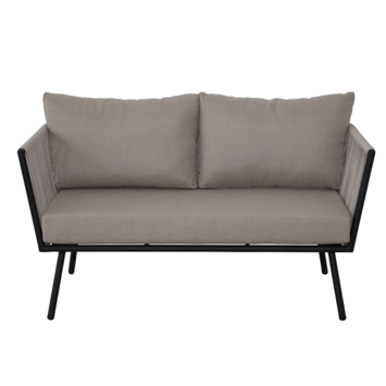 Deze bank wordt als bouwpakket geleverd en is eenvoudig zelf te monteren. De meegeleverde kussens zorgen direct voor extra comfort en maken de bank klaar voor gebruik. Het stevige metalen frame is weerbestendig en gemakkelijk te onderhouden, perfect voor buitengebruik.