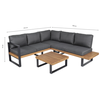 De Wakefield loungeset Skopelos brengt comfort en natuurlijke charme samen. De set bestaat uit een ruime hoekbank en een praktische bijzettafel, beide vervaardigd uit eucalyptus hout met een elegante oiled teak look. Met afmetingen van 215 cm breed, 76 cm diep en 72 cm hoog, biedt deze loungeset royaal plaats aan 5 personen. De bijpassende donkergrijze kussens maken het geheel compleet. De rugkussens zijn 15 cm dik en de zitkussens 10 cm dik, wat zorgt voor optimaal zitcomfort tijdens een gezellige middag of avond in de tuin. Voor het behoud van de houtkleur en kwaliteit is het belangrijk om de set regelmatig schoon te maken en te behandelen met een tuinmeubelolie. De Skopelos is dé keuze voor een stijlvolle tuinsetting waarin je ultiem kunt ontspannen.