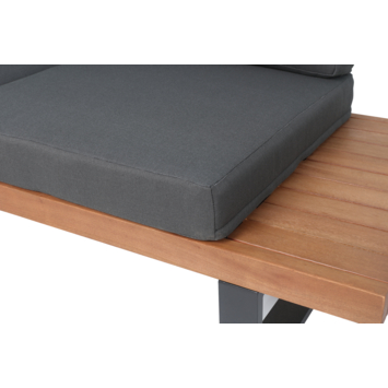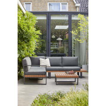 - Hoekloungebank met zijtablet, salontafel, zit- en rugkussens