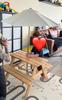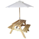 Deze picknickset is ideaal voor een gezellig samenzijn in de buitenlucht, speciaal ontworpen voor kinderen. De set bestaat uit een stevige rechthoekige tafel met twee bijpassende banken en een praktische parasol. Met voldoende ruimte voor vier kinderen biedt deze set een comfortabele plek om te eten, knutselen of spelletjes te spelen in de frisse lucht. Dankzij de parasol blijven de kinderen goed beschermd tegen de zon en kunnen ze onbezorgd genieten van hun buitenactiviteiten in de schaduw. Onderhoudstip: Om de set in topconditie te houden, is het aan te raden deze bij langdurig niet-gebruik op een droge, beschutte plek op te bergen of te bedekken met een beschermhoes. Zo verleng je de levensduur en blijft de set er langer mooi uitzien.
