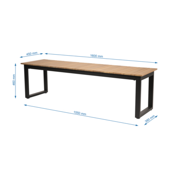 • Zitting in light teak gebeitst acacia hout en zwart poedergecoat metalen onderstel