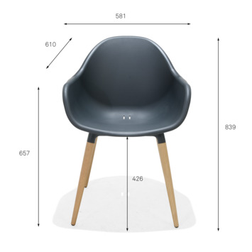 De Wakefield tuinstoel Odense in zwart biedt een perfecte balans tussen modern design en natuurlijk comfort. De kunststof zitting in zwart en de houten poten zorgen voor een eigentijdse uitstraling die goed past in elke buitenruimte. De zithoogte van 42,6 cm en de afmetingen van 58,1 cm breed en 61 cm diep zorgen ervoor dat je heerlijk kunt ontspannen.