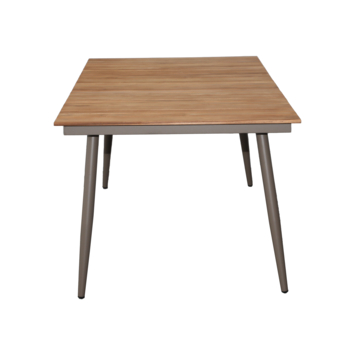 De Wakefield tuintafel Maria is een prachtige en functionele toevoeging aan jouw tuin of terras. Met een tafelblad van 177,5 x 95 cm biedt deze rechthoekige tafel ruimte voor zes personen, ideaal voor gezellige diners en borrels in de buitenlucht. Het blad is vervaardigd uit geolied teak hout, wat zorgt voor een warme, natuurlijke uitstraling en tegelijkertijd extra bescherming biedt tegen slijtage en weersinvloeden. Het stevige taupe gecoate metalen onderstel geeft de tafel een moderne en verfijnde look, terwijl het zorgt voor stabiliteit en een lange levensduur. Met een hoogte van 74 cm biedt de tafel een comfortabele zithoogte en past hij perfect bij diverse tuinstoelen. Dankzij de stevige constructie en hoogwaardige materialen is de Maria een uitstekende keuze voor wie op zoek is naar een stijlvolle en robuuste tuintafel. De Wakefield tuintafel Maria wordt geleverd als bouwpakket en is eenvoudig zelf in elkaar te zetten. Voor optimaal behoud van de kleur en kwaliteit van het teak hout raden we aan de tafel regelmatig te oliën. Zo blijft hij mooi en goed beschermd tegen verschillende weersomstandigheden. Combineer de tafel met bijpassende stoelen en accessoires om een sfeervolle buitenruimte te creëren. Kies voor de Wakefield tuintafel Maria en geniet jarenlang van stijl en comfort in je tuin.