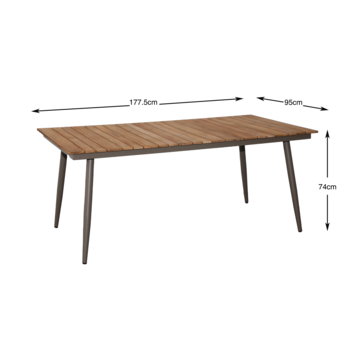 - Tafelblad 177,5 x 95 cm, hoogte 74 cm