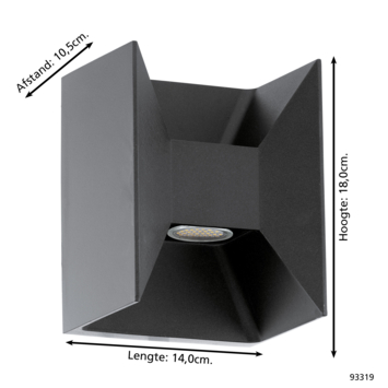 De antraciete Morin wandlamp is gemaakt van aluminium. De verlichtingsbron bevat geïntegreerde LED. LED is een energiezuinig alternatief voor de halogeenlamp, spaarlamp en gloeilamp. Je bespaart hierdoor meer op je verlichtingskosten. Deze lamp heeft een maximaal vermogen van 2 W en een beschermingswaarde van 44. Hiermee is de lamp spatwaterdicht en geschikt voor buitengebruik. Een mooie verlichting in de tuin met deze mooie lamp kun je niet missen! Kortom: de Morino wandlamp van Eglo is een prettige verlichtingsbron voor buitengebruik.