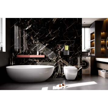 Maak een statement met de zwart marmer glans en creëer een ruimte die luxe uitstraalt! Wist je dat deze tegel ook beschikbaar is als groot douchewandpaneel van 2,60 x 0,90m? Voor een perfecte, samenhangende look!