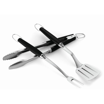 Geen enkele barbecue-goeroe kan zonder deze driedelige Weber accessoireset met een vork, een spatel en een tang. De degelijke accessoires bestaan uit hoogwaardig RVS en hebben een handgreep uit kunststof, waardoor ze prettig in de hand liggen. Gebruik de Weber bestekhouder zodat je ze altijd bij de hand hebt. Tip: barbecue-goeroe in de familie of vriendenkring? Deze set is het ideale cadeau!
