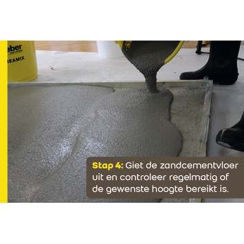 Met Weber Beamix Vloeibare Zandcement 20 kg kies je voor de snelste en gemakkelijkste manier om een zandcementvloer aan te brengen. In plaats van intensief smeren en afreien, giet je het zandcement licht en eenvoudig. Dit vermindert de inspanning en zorgt ervoor dat je tot wel 30% sneller klaar bent. Het zelfverdichtende karakter zorgt voor een constante sterkte, en je kunt het gebruiken voor vloerverwarming en natte ruimtes zoals de badkamer, keuken en toilet. Daarnaast levert het een flinke besparing op CO2-uitstoot, tot wel 45%.