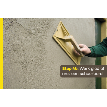 Makkelijk te mengen. Een mooie muur ermee gestuct.