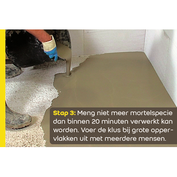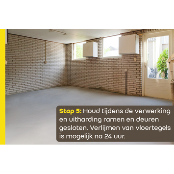 - Na 4 uur beloopbaar, na 24 uur betegelbaar