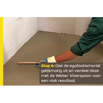 Vloer van kamer lag een cm hoger dan de gang, om de pc vloer mooi door te laten lopen, hebben we egalisatie van weber gebruikt om het verschil op te hogen, geweldig spul, vloertje ligt er keurig bij.
