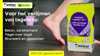 Weber Beamix Flexibele tegellijm eco grijs is een milieubewuste, stofarme flexibele tegellijm. Bij het produceren van deze tegellijm is er verantwoord omgegaan met materialen. Hierdoor zorgt de milieubewuste tegellijm dat er 33% minder co2 uitstoot is. Deze flexibele tegellijm is ideaal voor het lijmen van tegels op o.a. beton, zandcement, kalkzandsteen, gipsblokken en op vloeren met vloerverwarming. Weber Beamix Flexibele tegellijm eco is uitermate geschikt voor het leggen van tegels over tegels.
