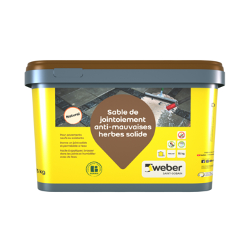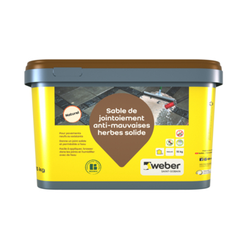 Weber Beamix Onkruidmijdend Voegzand Hard Naturel 15 kg voorkomt effectief onkruidgroei tussen je bestrating. Het is geschikt voor zowel nieuwe als bestaande bestrating en zorgt voor een harde, waterdoorlatende voeg. Het aanbrengen is eenvoudig: veeg het voegzand in de voegen en benevel het daarna met water. Het zand blijft hard en stevig, zelfs na lange tijd.