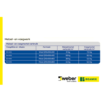 Met de Weber Beamix voegmortel 331-2772 lichtgrijs kun je snel en eenvoudig voegen en herstelwerkzaamheden aan metselwerk uitvoeren. De voegmortel is makkelijk verwerkbaar en wordt kant-en-klaar geleverd, zodat je direct aan de slag kunt. Deze mortel is geschikt voor vrijwel alle gangbare metselstenen, en je kunt hem ook gebruiken voor het voegen van glazen bouwstenen. De lichtgrijze kleur zorgt voor een nette afwerking. De verpakking bevat 15 kg, wat ideaal is voor grotere klussen. Weber Beamix Voegmortel biedt niet alleen een prachtige kleurafwerking, maar is ook extra uitslagremmend, zodat je geen last hebt van vervelende vlekken of uitslag na verloop van tijd.