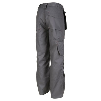 Comfortabele werkbroek in grijs/zwart voor zware werkzaamheden. Deze broek combineert een uitstekende pasvorm met de belangrijkste basisfunctionaliteiten. Ergonomisch gevormde broekspijpen; 2 oversized achterzakken waarvan één gesloten en één open; extra zak voor mobiele telefoon; meterzak met extra pennenzak en lussen voor gereedschap; 1 holsterzak met extra zak; 1 holsterzak met lussen voor gereedschap; 1 hamerhouder; 3-naads gestikte verstevigingen; verstevigde kniestukken; 1 D-ring; extra versteviging tussen de benen.