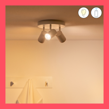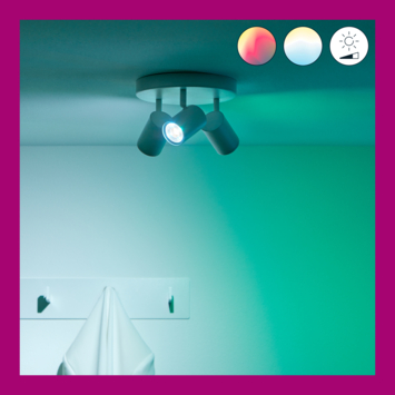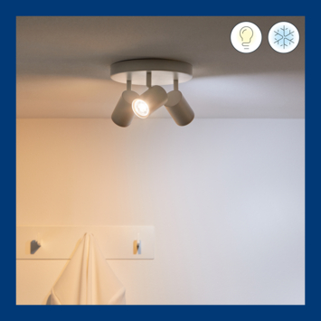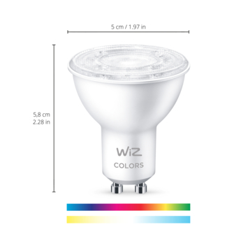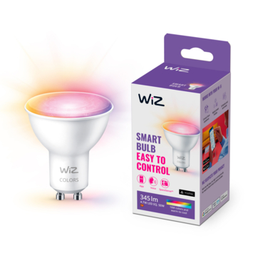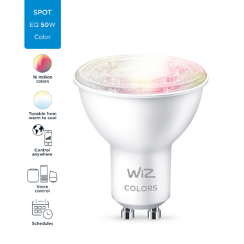 De WiZ GU10 LED-spot ondersteunt je dagelijkse leven met slimme verlichting. Geef je huis eenvoudig sfeer met warmwit tot koelwit licht of kies uit miljoenen mogelijke kleuren in de WiZ app. Stel timers in om je lampen in of uit te schakelen volgens jouw dagritme, zoals helder wit licht in de ochtend en zacht warm licht in de avond. De slimme lampen bedien je met je smartphone of stem; dat kan zelfs als je niet thuis bent. WiZ lampen werken rechtstreeks vanuit de doos, op je eigen wifinetwerk. Deze lamp heeft een GU10-fitting en gaat vaak perfect samen met je in- of opbouwspots.