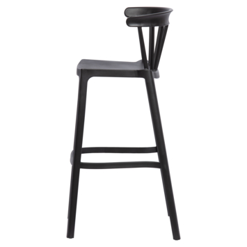 De afmetingen van deze barstoel zijn 103 cm hoog, 54 cm breed en 51 cm diep. De zithoogte van 76,5 cm en de rugleuning van 28 cm zorgen voor een comfortabele zithouding. Polypropyleen is een vochtbestendige en slijtvaste kunststof, waardoor de stoel geschikt is voor zowel binnen als buiten. Om de levensduur te verlengen, is het aan te raden de stoel af te dekken met een beschermhoes bij zware regenval of hem binnenshuis te bewaren tijdens de winter.