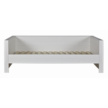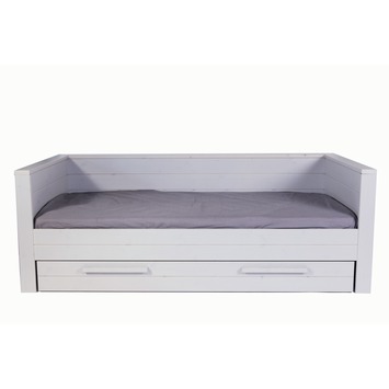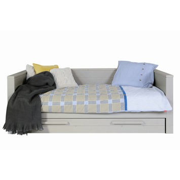 Is het een bed of een bank? Deze Dennis bedbank van Woood is 2 in 1, wat erg handig is in kleinere kamers en een must voor tieners die veel tijd doorbrengen in hun kamer. De kiezelgrijze bedbank is gemaakt uit massief grenen en heeft een geborstelde afwerking. Exclusief matras, lattenbodem en bedlade die je ook bij ons kan vinden. Tip: alle onderdelen van de Dennis collectie zijn beschikbaar in verschillende tinten grijs. Leuk om te matchen ... of te mixen voor een speels geheel.