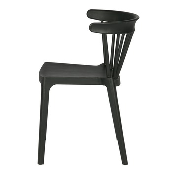Terug van weggeweest, de populaire spijlenstoel. Nu in een kunststof (100% polypropyleen) uitvoering met de naam Daan in de kleur mat zwart van het merk WOOOD. De stoel Daan heeft een royale zit en door z'n fraaie vormgeving een uitstekend zitcomfort. De stoel met de spijlen rugleuning heeft een eigentijdse vintage uitstraling. De stoel Daan is binnen te gebruiken als eetkamerstoel en is ook leuk als bureaustoel en buiten is hij geschikt als terrasstoel. De poten zijn voorzien van zachte kunststof glijdoppen. Wanneer je de stoel wilt opbergen kan dit eenvoudig omdat de stoelen stapelbaar zijn. De stoel Daan, met een draagvermogen van 140 kg, heeft een zitbreedte van 43 cm een zithoogte van 44,5 cm en een zitdiepte van 40 cm. De stoel Daan is ook verkrijgbaar in de matte kleuren wit en jadegroen..Tip: Combineer meerdere kleuren om een eettafel of terrastafel, dit geeft een verrassend speels effect aan je interieur of terras..