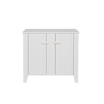 Berg je spullen op in deze lage Brent opbergkast met een originele sluiting. De kast heeft 2 deuren en 1 legplank waarop je vanalles kwijt kan. De kast is gemaakt uit massief grenen dat wit is gelakt. Staat mooi in een woon- of slaapkamer. Combineer 2 kastjes in dezelfde kleur voor nog meer opbergruimte.