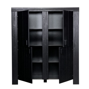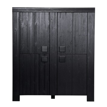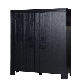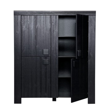 Een robuuste kast met oosterse invloeden? Vraag naar Dirk. Hij heeft vier grote deuren met een opvallende handgreep en daarachter telkens een legplank, zodat je in totaal over acht opbergvakken beschikt. De kast is gemaakt van massief grenen van duurzame afkomst in het wit of het zwart gelakt. Topstuk voor in je woonkamer of een andere ruime ruimte.