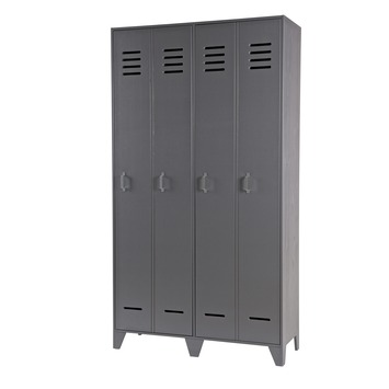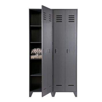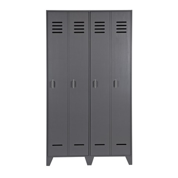 Waan je op een Amerikaanse High School met de Stijn kast die veel weg heeft van een authentieke locker. Deze staalgrijze kast is niet gemaakt uit blinkend metaal, maar uit mat en massief grenen van duurzame afkomst. De kast past in elke stoere of landelijke kamer en is beschikbaar in verschillende kleuren en hoogtes. De hoge versie is 187 cm hoog, de lage versie is 65 cm laag.