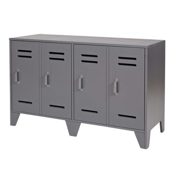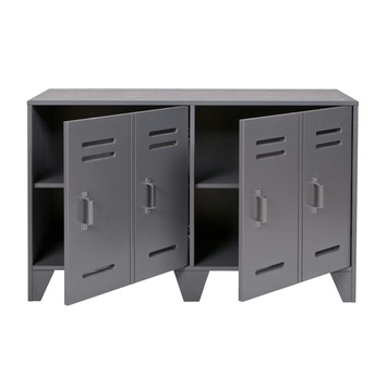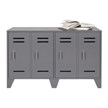 Waan je op een Amerikaanse High School met de Stijn kast die veel weg heeft van een authentieke locker. Deze staalgrijze kast is niet gemaakt uit blinkend metaal, maar uit mat en massief grenen van duurzame afkomst. De kast past in elke stoere of landelijke kamer en is beschikbaar in verschillende kleuren en hoogtes. De hoge versie is 187 cm hoog, de lage versie is 65 cm laag.