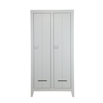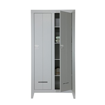 De kluisnachtkast van Woood ziet eruit als een stoere kluis, maar is eigenlijk een lieve kleerkast met 2 robuuste, metalen grepen, 2 deuren en lekker veel opbergruimte voor je favoriete kledij. Gemaakt uit geborsteld grenen in de kleur betongrijs.