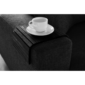 Bye bye vuile zetels en armleuningen dankzij deze flexibele armleuning van Woood, waarmee jij even flexibel van een avondje zetelhangen of tv-kijken kan genieten. Zet er zonder zorgen je drankje of snack op. De houten armleuning is gemaakt van elegante eiken latjes in natuur, wit, taupe of zwart zodat hij in elk interieur past.