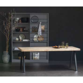 Het mango hout is afgewerkt met een lime wash finish, waardoor het mango hout een soort white wash laagje krijgt. Deze afwerking verbeterd de algehele uitstraling van het hout en benadrukt tegelijkertijd de schoonheid van de houtnerf. Het tafelblad heeft hierdoor een stoer en robuust uiterlijk met een lichte uitstraling.