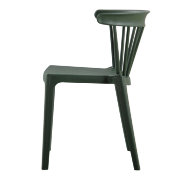 De Bliss spijlenstoel is de ideale keuze als je op zoek bent naar een moderne, lichtgewicht stoel die geschikt is voor zowel binnen als buiten. Deze tuinstoel is gemaakt van polypropyleen, een stevige kunststofsoort die goed bestand is tegen vocht en eenvoudig schoon te houden is. Door het praktische ontwerp is de stoel stapelbaar, waardoor je hem compact kunt opbergen. De legergroene kleur zorgt voor een stijlvolle en tijdloze look die in elk interieur of tuin past.