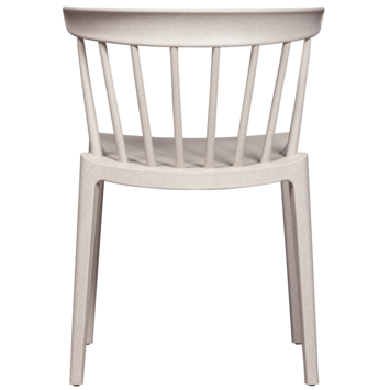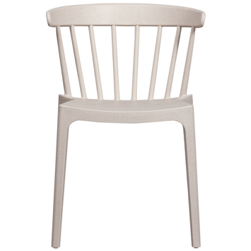 De Bliss spijlenstoel van WOOOD combineert stijl en functionaliteit in een lichtgewicht en stapelbaar design. De tuinstoel is vervaardigd uit polypropyleen, een sterke kunststofsoort, in combinatie met plantaardige vezels. De strakke vormgeving maakt hem een veelzijdige keuze voor diverse interieur- en tuinsettings.