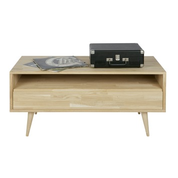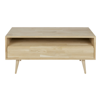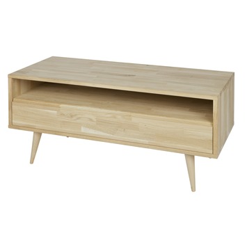 Het Tygo tv-meubel van Woood is verkrijgbaar als hangend meubel of staand meubel, maar steeds gemaakt uit onbehandelde eik met een vintage uitstraling. Over de indeling van het meubel is goed nagedacht. De kast beschikt over een grote lade, een kleinere schuif en een open vak. In elk van de 3 compartimenten kan je wel iets anders kwijt: je dvd's, je kabels, ... Praktisch én prachtig! Tip: het model op de foto is geschikt om op de grond te zetten.