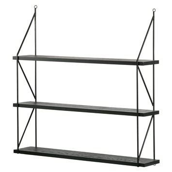WOOOD wandrek Kiki met zwart gelakte metalen zijkanten en plankdragers en 3 MDF zwart gelakte legplanken is 80 cm breed en heeft een hoogte van 75 cm met een plankdiepte van 16 cm. Dit handige stoere wandrek past in elk interieur. Het wandrek Kiki is ook met 2 legplanken, afmeting: 60x50x14,5 cm verkrijgbaar.