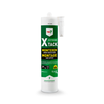 Deze montagelijm is tril- en slagbestendig en hecht zelfs op natte ondergronden. Daardoor kun je de kit gebruiken in verschillende omstandigheden, zowel binnen als buiten. De X-Tack 7 is gemaakt op basis van MS-polymeer, een flexibel materiaal dat goed blijft zitten bij beweging of trillingen. Je kunt kiezen uit meerdere kleuren, waaronder wit, zodat de lijm netjes aansluit bij jouw klus.