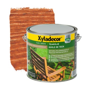 Bescherm je teaken meubelen met de natuurlijke beschermende olie van Xyladecor. De olie bevat extra wax waardoor hij extreem waterbestendig en weerbestendig is. Daarnaast voedt hij het hout en helpt hij de natuurlijke kleur van nieuw hout te bewaren. De olie is dan ook ideaal voor houten tuinmeubelen.