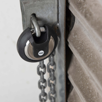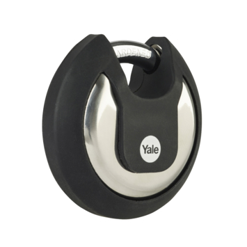 Yale 70 mm roestvrij stalen discusslot met gesloten beugel, behuizing in zeewaterbestendig roestvrij staal met zacht rubberen bescherming tegen beschadigingen. Sleutel blijft vastzitten wanneer slot geopend is. Door de ingesloten beugel beperkt toegang tot de beugel bij een aanval op de beugel. Inclusief 3 sleutels.