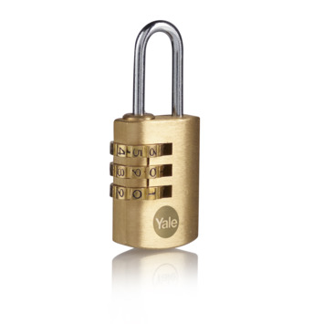 Yale 22 mm standaard stevig messing huis combinatie hangslot en herinstelbaar cijferhangslot. Met verchroomd stalen beugel, verpakt per stuk.