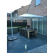 De zweefparasol Ibiza vierkant wit 300 x 300 cm beschermt je de hele dag door tegen de zon, want je kan 'm 360° draaien en in verschillende standen zetten. Zo houd je altijd een schaduwplek waar je een beetje kunt afkoelen. De parasol is gemaakt uit 8 stijlvolle baleinen bekleed met polyester, heeft een hoogte van 262 centimeter en een diameter van maar liefst 300 centimeter. Inclusief zwengel en windvanger. Door deze ruime diameter is het best een grote parasol. Je hebt hierdoor een voetgewicht nodig van 90 kg. Dat kun je doen door het voetstuk te verzwaren met voettegels. Deze zijn niet inbegrepen, maar hebben wij wel in het assortiment.