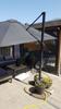 De Zweefparasol Ibiza Vierkant Zwart 300x300 cm beschermt je de hele dag door tegen de zon, want je kan 'm 360° draaien en in verschillende standen zetten. Zo houd je altijd een schaduwplek waar je een beetje kunt afkoelen. De parasol is gemaakt uit 8 stijlvolle baleinen bekleed met polyester, heeft een hoogte van 262 centimeter en een diameter van maar liefst 300 centimeter. Inclusief zwengel en windvanger. Door deze ruime diameter is het best een grote parasol. Je hebt hierdoor een voetgewicht nodig van 90 kg. Dat kun je doen door het voetstuk te verzwaren met voettegels. Deze zijn niet inbegrepen, maar hebben wij wel in het assortiment.