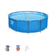 Beleef uren zwemplezier in dit ronde stalen frame zwembad van Bestway met een totale afmeting van 366x100 cm en een watercapaciteit van 9150 liter. Het zwembad is uitgerust met een extra stevig, corrosiebestendig stalen frame met het slimme Seal & Lock systeem en is daarnaast gemakkelijk te installeren, bestand tegen UV stralen en chloor en is gemaakt uit duurzaam Tritech materiaal. Na het zwemseizoen kan je het water gemakkelijk weg laten lopen via het ingebouwde leegloopventiel dat je desgewenst kan aansluiten op je tuinslang. Geleverd inclusief trapladder en 12 Volt cartridgefilter van 2 m³/uur. Te gebruiken met filterpatroon type II die je ook vindt bij GAMMA.