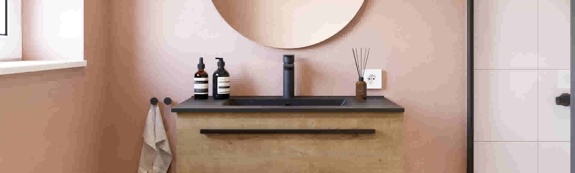 Stem je meubel af op de rest van je badkamer. Natuurtinten en organische vormen komen goed tot hun recht met houtdecoren of zachte groentinten. Een hedendaagse, minimalistische badkamer? Dan zorgen wit, greige of andere neutrale kleuren voor een harmonieus geheel.